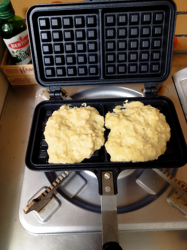 ・ 生地が出来たら、ワッフル型フライパンで焼く!某サイトで600円程でした( *´艸`)